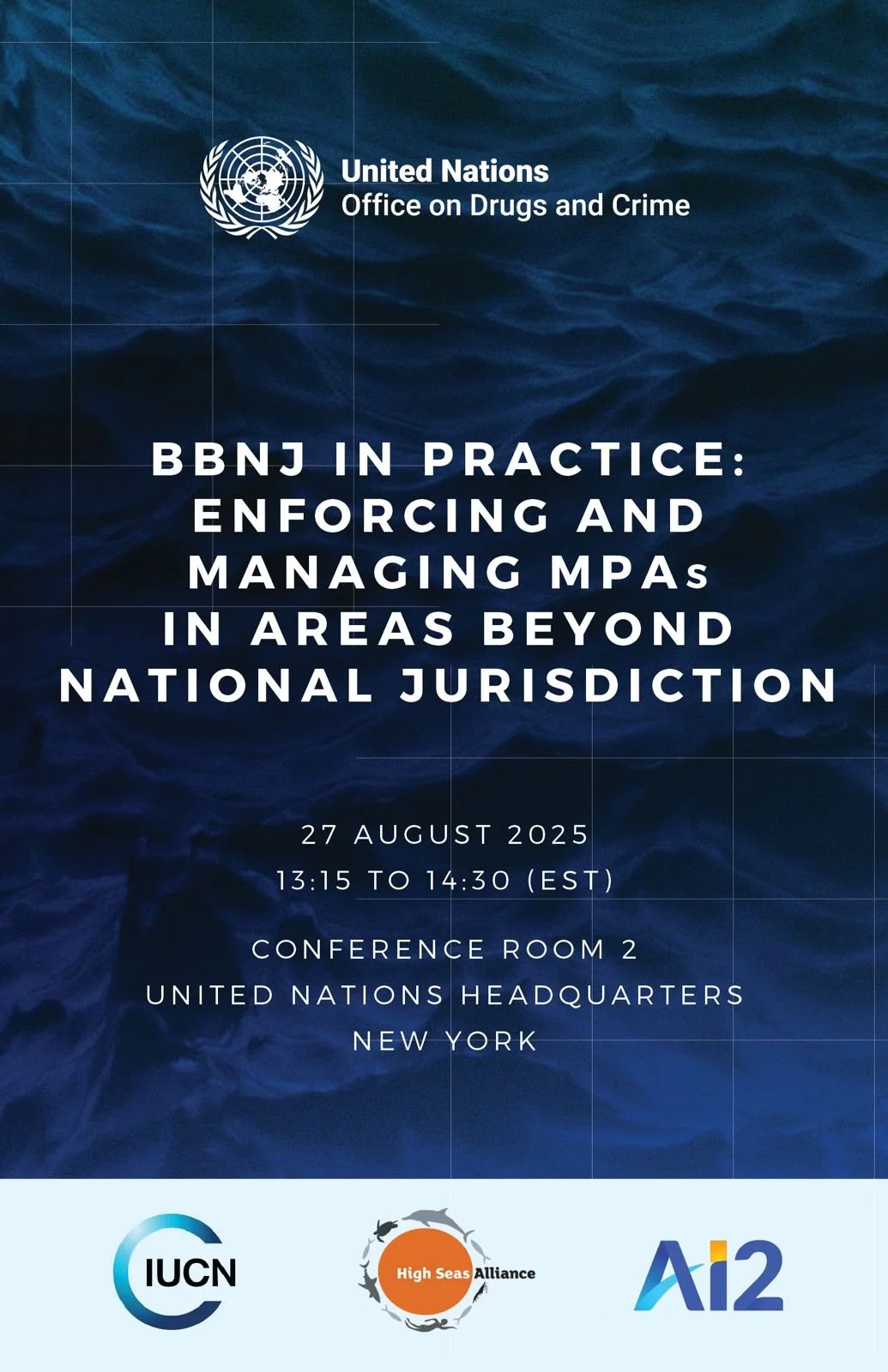 The session, titled “BBNJ in Practice: Enforcing and Managing MPAs in Areas Beyond National Jurisdiction,” will take place on August 27, 2025, from 13:15 to 14:30 (EST) in Conference Room 2 of the United Nations Headquarters Building in New York.
